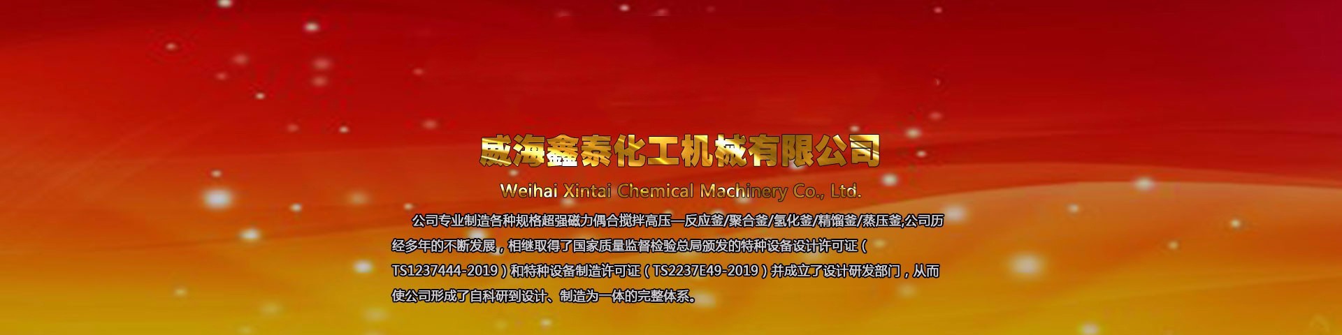 威海鑫泰化工機械有限公司位于山東威海,本公司專業(yè)制造銷售各種規(guī)格高壓反應釜、磁力反應釜、不銹鋼高壓釜、不銹鋼反應釜、強磁力偶合攪拌反應釜及與其配套的壓力罐、冷凝器、塔器等,其結構形式、高中低壓、加熱方式、攪拌形式、轉速變化均可按標準或按用戶工藝要求進行選配定制,廠家直銷,產(chǎn)品價格低,型號全。